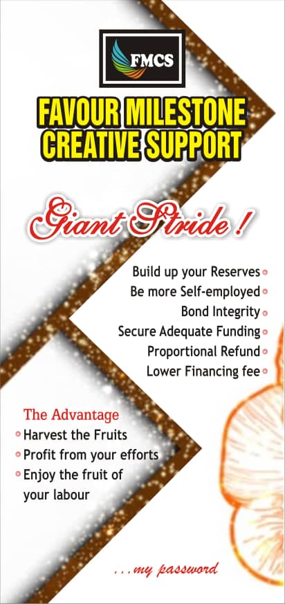 Favour milestone creative support is a provider of capital and related financial solutions to all participants. Its offers include various credits facilities such as simple saving accounts, business and corporate loans facilities and socialization within her spheres. FMCS is a friendly and a remarkable financial organization with social gathering of participants across the globe that are embedded with utmost integrity.